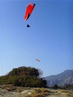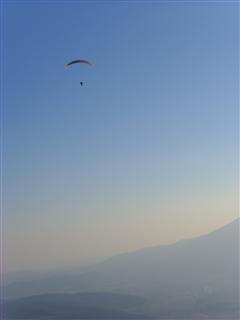It was lighter than yesterday and the day before and Geoff and Mike nearly went down before they both got a low save and then both got over 1000 feet ATO. I mislaid a glove and had to unpack everything until I found it and then I nearly went down as well. I got a weak thermal that meant I had to do ovals, not circles, so as to avoid hitting the monastery, but I got up eventually. I climbed to about 800′ ATO and then played around until we all got low again. It took all my skill and perseverance to get back up, but I did. Very satisfying. I celebrated by top landing and having a rest.