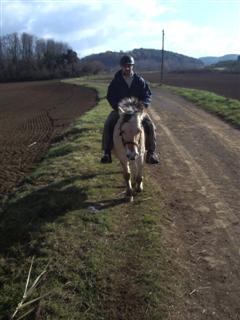 Today was Michaela and Wayne’s last day and the forecast looked to be the worst of their stay. Wayne decided he wanted to go horse riding, so I arranged this with Willem. I usually go riding in Batet where you get fantastic views of the volcano of Croscat and the snow covered Pyrenees, but under this morning’s leaden skies, we were robbed of the nice views. We caught our horses in the field and then went on a tour of the volcanoes, fields and forests around Batet. Half way around the ride the sun came out and it was beautifully clear.
