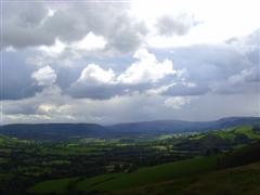 Steve had suggested Elan Valley and Piers confirmed it was off to the south a bit, but looking good. So we dismissed all the original options and plumped for Elan Valley. It was indeed looking good – all the way to Rhayader, where the sky started to look dark and ominous. We would have to get into the air and downwind fast to outrun it. Once on the hill the sky was no longer a problem though… the wind was 90 degrees off, so no flying anyway. Graeme and Dave B. also turned up and given the sky we had just driven through, we decided to switch sites and went to Camlo.