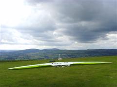 We’ve tried and failed to fly Camlo every time we’ve been there, mainly due to strong winds. This time, the winds were so light we didn’t think we could stay up and the sky downwind was good, but getting more threatening ahead. By the time we had our gliders out the wind had gone off and picked up. Graeme had a three minute flight where he didn’t get above the hill and then slope landed over the fence. Dave had to walk some paces down the hill to launch as the wind was still picking up and once in the air zoomed one way and crawled back the other before landing near the bottom of the hill and having to walk back up. At this point Graeme and Dave decided it was high time to tackle the daily crossword and we looked at the approaching rain and started packing up.