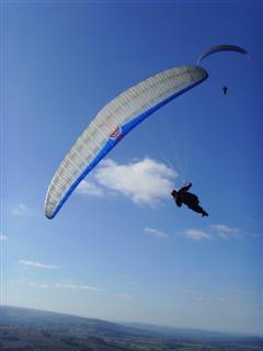 Lots of doom and gloom as the morning was cloudy and there was no wind. Eventually, people started flying at the Long Mynd and actually getting high at Black Knoll. We headed out and the place was packed, as you would expect on a good Saturday. Dave and I checked my line lengths to try to diagnose my left hand thermalling issue and he test flew it, but no obvious turns. As he took off the sky brightened significantly and it turned into a glorious sunny day.