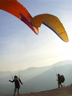 We met Jordi walking back up for his car after a top to bottom, so we turned around and fetched his glider for him so he could have another go. It was nicely flyable when we got there and Geoff and Jordi boated about while I had a snooze. I am having an insomnia phase and it caught up with me today – I couldn’t keep my eyes open. Marginally more refreshed, I got ready, launched and easily climbed 1000 feet. The thermals were big, smooth and about 1.9m/s max. I got through the inversion and spotted a group of migrating birds flying along the valley. There must have been about sixty, flying in a big V formation. I tried to fly out to them to have a closer look, but they diverted and I hit lots of sink, so had to abandon chasing them and headed back to the ridge. Shame, as I still don’t know what type of birds they were.