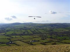 Judith writes: The forecast was for strengthening winds and over-development in the afternoon, so we anticipated an early day. The buzzards were already out in force when we got to the hill at 10am, so we got ready after a few ‘hellos’ to friends not seen for months. Once in the air, the thermals were weak and while I managed to stay high most of the time I was on the ridge, I had great trouble getting more than 2800′ AMSL. There were loads of pilots flying and the XC crew were really giving it their all. Still, it took over an hour of trying to get a good enough climb, and more importantly, to finally get some cloud development over the back. Once the cumulus started to build over Ragleth, we set off in a big group, heading for the lower pilots who had found a thermal between the Mynd and Church Stretton. The climbs were weak and at one point I thought we would be doing really well just to get to Wenlock Edge. It took three thermals to get there!