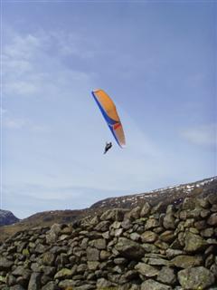 Meanwhile, David came down for a revised task briefing. The wind was flowing up all three valleys so it was going to be tricky to do our triangle, so the new task was get up and see what’s possible – which by a lucky coincidence is the standard task I normally set myself. Since David seemed to have trouble getting down to top land, the conditions were obviously lifty, so Geoff launched and easily got up. John Sylvester, me and another pilot followed and it was a hard, slow scratch up the face. I worked my way into the bowl, but spotted David thermalling out front, so I skipped 400 feet of scratching by jumping into his lift. We eventually got over the top of the ridge and what stunning views! Snowdon, the sea, steep valleys. It was just breathtaking.