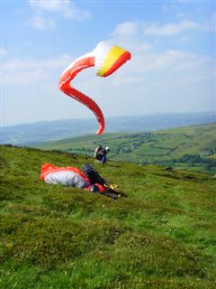 Just past Llandindrod Wells, a couple of other PGs appeared, so maybe they were from the same gaggle I left in. They both landed a little before me. I landed at Builth, for 57km, just after 6.00pm, though there were still more miles to be had, I think, but it was getting a bit harder as the day drew to a close. A fun flight though, and Judith’s turn to do the retrieve.