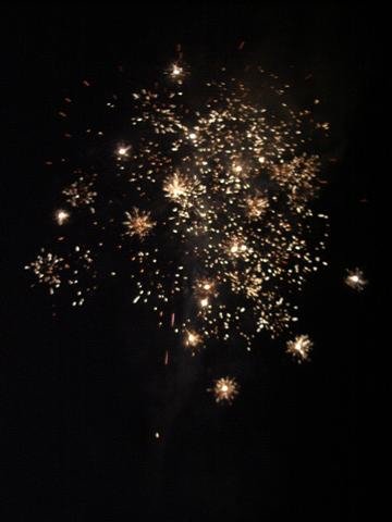 Firework display. The paramotors were flying high above.