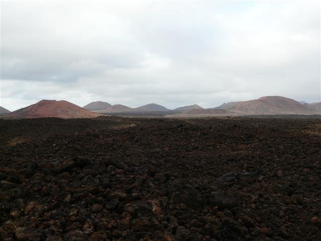Volcanoes in the distance.